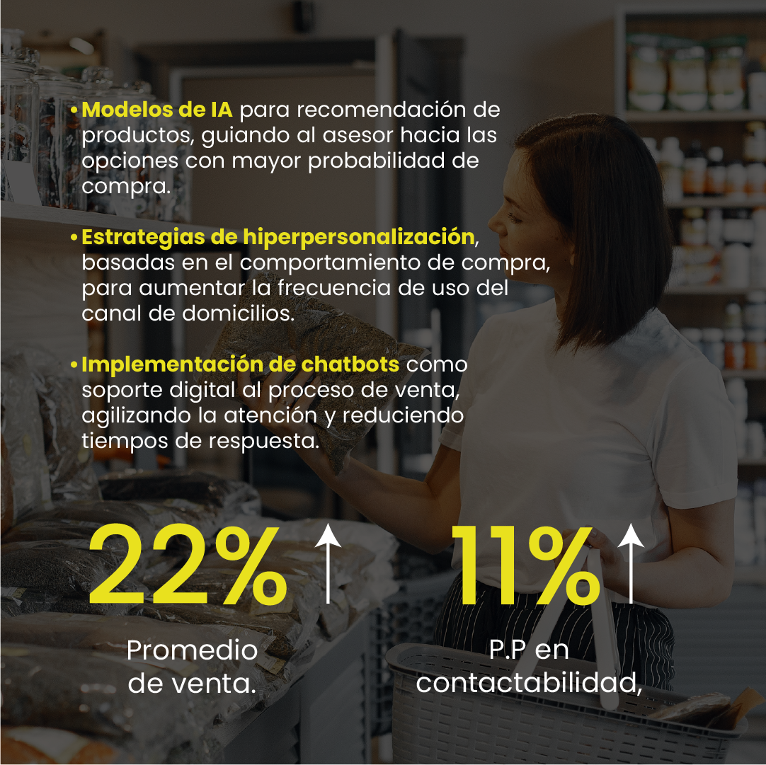 Apoyamos a marcas retail desde el soporte tradicional en canales digitales, campañas de telemercadeo, hasta soluciones avanzadas como automatización del journey de cliente y análisis de comportamiento.